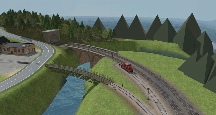 Hallo Markus! ... Ist es glücklicherweise nicht! Kennst Du das Brückensystem von @Roter Brummer? Ziehe einfach mal die Modelle auf die Anlage und gehe die ganzen Variationen durch. Da findest Du bestimmt etwas. Alle relevanten Bauteile sind als Spline umgesetzt, Du kannst also ganz einfach das Pfad-Folgen-Werkzeug auf deine vorhandenen Gleise anwenden, inklusive der Bögen und Steigungen. Hier zwei Beispiele, die ich mit diesem Modell innerhalb von 5 Minuten erstellt habe: Ich hoffe, das hilft Dir weiter. Guten Rutsch! LG Alex- Anlage Keilbahnhof