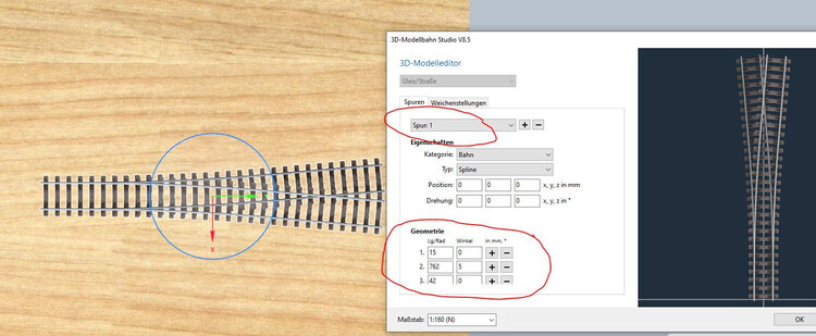 ich habe neulich festgestellt, dass die Peco Y-Weiche in Spur N - Code 55 im Katalog leider nicht der tatsächlichen Geometrie entspricht. Diese hat eigentlich einen Winkel von 10° und nicht wie im Modell 20°. Außerdem stimmt der Radius auch nicht.