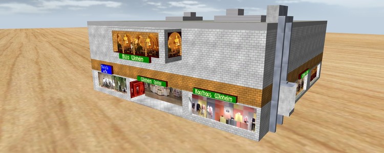Mal kein Fachwerkhaus: Das Kaufhaus hat einen animierten Außenaufzug mit "gläserner" Rückseite. Es wartet - zusammen mit den Häusern aus Alt-Sachsenhausen - auf die Übernahme in den Katalog.- Frankfurter Altstadt