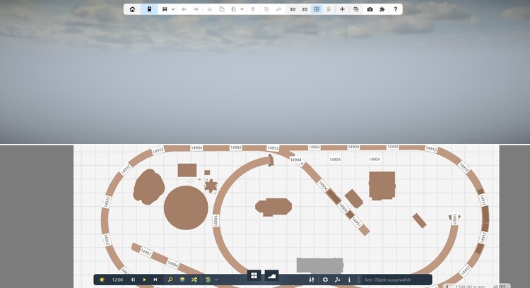 Hallo liebes Forum Team. Ach Du Schande. Keine Ahnung wie ich das wieder hinbekommen habe :-( Wenn ich das Studio starte, dann sehe ich nur einen schönen Blick in den Himmel/ Wolken. Wenn ich dann meine Anlage öffnen möchte sehe ich ebenfalls in 3D den Himmel. Ich kann mich drehen und wenden wie ich will, ich finde nicht zurück den Blick auf die Anlage. Kann man die Ansichten auf Werkseinstellungen zurücksetzen ? Desweiteren meine Frage. Kann mir Jemanden nennen oder einen Tipp geben, der mir bei meiner geplanten Koffereisenbahn die Elektrifizierung näher bringen kann. Schienen sind geplant von Trix Spur N. Es soll nur einen Trafo geben. Vorbild ist die Anlage der Firma NOCH. Modell Obersdorf Analog. Für die Verdeutlichung anbei mal Bilder. Ich danke allen für die Hilfe im vorraus und wünsche einen schönen Abend !!! Gruß Gunnar