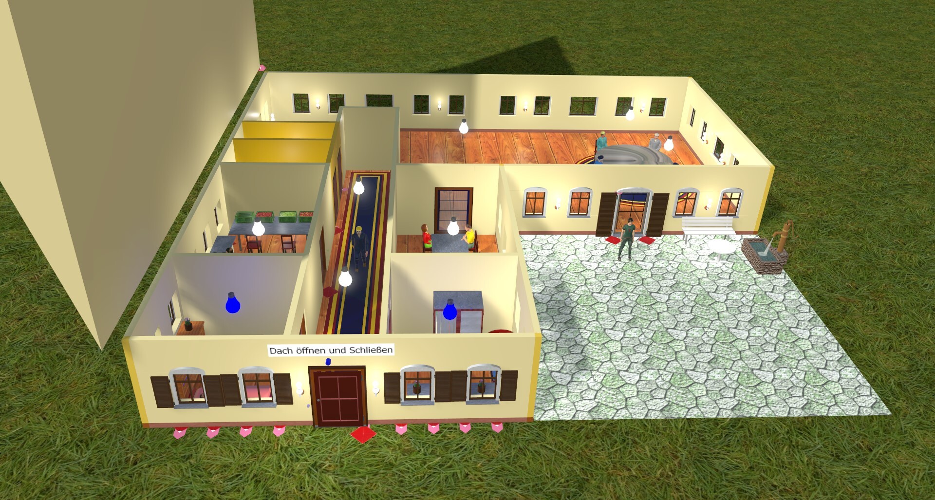 Hallo Freunde Ich habe mal wieder ein bischen gebastelt. Es ist ein kleines Haus mit ein bischen innen einrichtung, Türen und Fensterläden zum öffnen und Schliessen. Einem Kleinen Küchenschrank mit Schubladen und Türen die sich öffnen und Schliesen lassen. Auserdem habe ich auch noch das Dach zum aufklappen gemacht um den innenraum noch weiter gestalten zu können. Das einziege was mit nicht gelungen ist, die Fenster, Türn, Schubladen und das Dach öffnen sich zu Schnell. Hat einer eine lösung dafür. Auserdem möchte ich allen für die Tipps zur Animation von Fensterläden und Türen noch mal Herzlich Danken. Probiert alle Schalter einfach mal aus. Die ID Nr. lautet 3A42B633-01F5-4032-AC40-BBE58323741E Liebe Grüße Talima- Fenster und Türen Animieren, wie geht das:-)