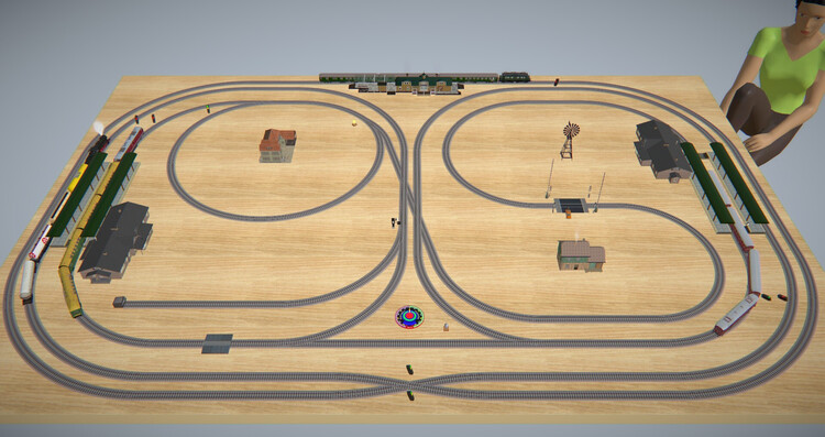 19. Thank you for developing this studio! Once a time I had a little, 2 * 1,5m H0 model railroad layout. I have a strong nostalgia for it and this studio can maximally fullfill this request. I created a very similar layout (2* bigger, better, more controlled, etc, etc) and I all satisfied for it. This studio has better solutions what I choosed for some cases but nostalgia factor directs me in develop. If you wish to start layout press big button and trains arrive. If all in work and you wish to re-pack them then switch hand-controlled turnout.