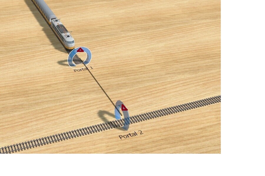 Dies ist keine poetische, sondern eine ganz reale Frage. Jedes Portal benötigt eine Richtung (wie bei Gelenkbussen). Wenn es gemäß der Zeichnung eingerichtet ist, fährt der Zug nach rechts ab.