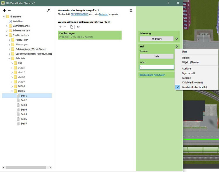 Hallo Neo, ich glaube, ich hatte für das nächste Ziel in der Liste einen falschen GK als Auslöser eingetragen. Prüfe gerade Die einzelnen Einträge in der EV und stelle die Zieleliste um. Hatte vorher einige Abzweigungen weniger bis zum nächsten Ziel. Jetzt stelle ich um auf maximal 7 Abzweigungen. Da komme ich wahrscheinlich mit 10 Zielen in der Liste aus. Wenn erledigt, melde ich mich nocnmal. Hänge Bilder an, wie es bis jetzt aussieht. Viele Grüße Oberrrrroller