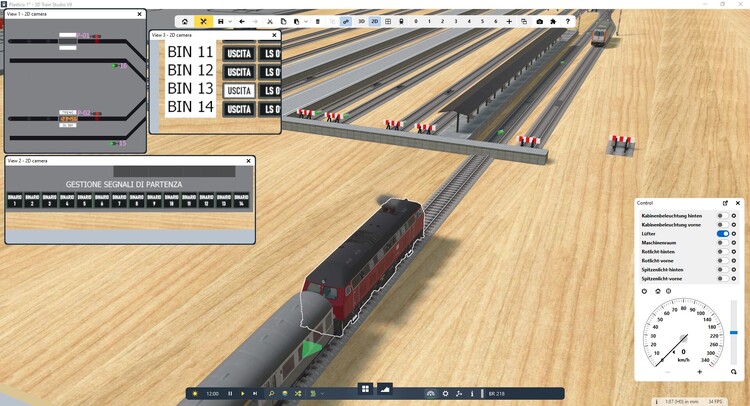 Hallo, hier bin ich wieder, um um eure Hilfe zu bitten. Bitte entschuldigt mich, aber der "Sprachenfaktor" erschwert mir die "Recherche" im Forum wirklich sehr. Das Thema wurde sicherlich schon behandelt... ich finde es nur nicht... und deshalb bitte ich euch von ganzem Herzen, geduldig mit mir zu sein... Ich erkläre euch, was ich gemacht habe, was ich mache und was ich erreichen möchte. 1) Ich habe eine Kopfbahnhof mit 14 Gleisen erstellt. 2) Die Ausfahrtsstrecke ist eine Schleife, die zurück zum Bahnhof führt, d.h. die Züge, die ausfahren, kehren nach einer Weile wieder zu diesem Bahnhof zurück. VORAB: Ich kann keine "Routen" verwenden, um die Fahrwege festzulegen, da es eine Begrenzung von 7 Weichen gibt, und wie ihr sehen könnt, liege ich weit darüber... also musste ich nach einer anderen Lösung suchen. 3) Ich habe daher ein "Modul" mit dem Namen "Vom EINGANG zu GLEIS14" erstellt, in dem ich alle Weichen aufgelistet habe, die gestellt werden müssen, damit ein Zug vom Signalschutz der Station bis zum Gleis 14 gelangen kann, und dann gibt es den Befehl zur Freigabe des Signals. 4) Mein Wunsch ist es, den Bahnverkehr im Bahnhof zu steuern. Was kann ich nicht umsetzen? Um dies zu tun, gibt es einige Dinge, die ich nicht hinbekomme, und ich finde keine Tutorials, die mir bei dieser Simulation helfen. 1.) Meine Absicht ist, dass durch Drücken der schwarzen Schaltfläche mit der Aufschrift "IN->14" das Modul "Vom EINGANG zu GLEIS14" startet... natürlich ist es jetzt nur eines... aber es werden später alle Schaltflächen und Module für die Verwaltung des gesamten Bahnhofs folgen... doch wenn ich nicht verstehe, wie ich das Modul mit dem Drücken der Schaltfläche verknüpfe, ist es nutzlos, den Rest vorzubereiten. Wie verknüpfe ich also das Modul mit dem Drücken der Schaltfläche? 2.) Eine andere Sache, die ich nicht verstehe: Wie kann ich die Farbe der schwarzen Schaltfläche ändern, wenn ich sie drücke? Ich möchte, dass sie "weiß" wird, als ob sie sich bei Betätigung einschaltet, um mir anzuzeigen, dass dies die ausgewählte Strecke ist. Es gibt noch andere Dinge, die ich verstehen muss, aber ich möchte Schritt für Schritt vorgehen... wenn es jemanden gibt, der so geduldig und nett ist, mir zu helfen, wäre ich wirklich sehr dankbar. Letzte Sache... leider sind die Bilder im "Tutorial"-Bereich natürlich auf Deutsch, und ich kann sie nicht nutzen, um die Tutorials zu verstehen... das bedauere ich sehr, denn es gibt wirklich viele interessante Informationen in diesem Forum... ich erinnere daran, dass ich das Spiel auf Englisch spiele... weil ich viele Begriffe verstehe, was mir auf Deutsch nicht gelingt... daher, wie bereits gesagt, lerne ich viele Dinge durch "Intuition" und Ausprobieren... aber es gibt Dinge, die ich einfach nicht in den Menüs finde... also nehme ich an, dass ich sie auf andere Weise erreichen kann... aber ich verstehe nicht, wie... Bitte, bitte helft mir! Vielen, vielen herzlichen Dank an alle. Ale.