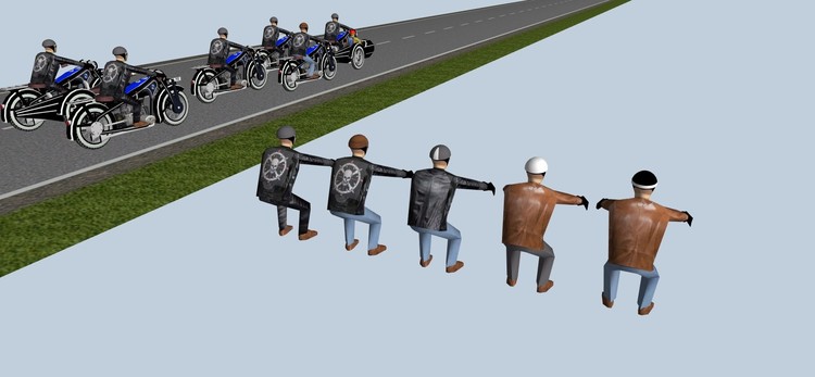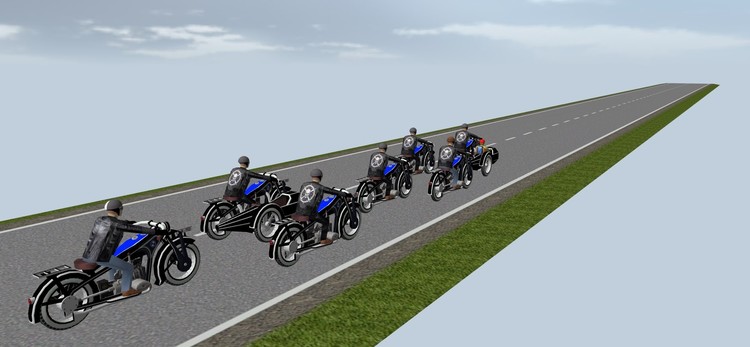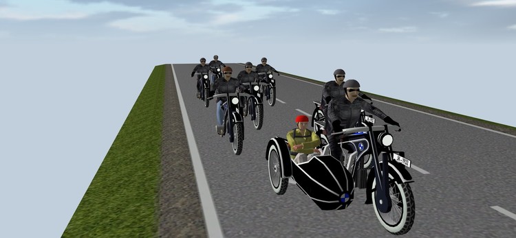7. Erlkönig erwischt ! Die neue alte BMW R16 von 1929. Das Modell habe ich per Augenmaß von Fotos nachgebaut, es ist keine exakte Nachbildung. Es gibt die R16 mit Seitenwagen oder als Solomaschine und 5 verschieden bekleidete (mit Unterstützung von Opax63) Fahrer. Die Räder sind Animiert und die Beleuchtung kann ein/aus geschaltet werden. Bevor man die R16 auf die Fahrspur setzt, sollte erst der Fahrer an die Maschine herangeführt werden er rastet an der richtigen Stelle ein. Fahrer mit dem Motorrad verketten und erst dann auf die Fahrspur setzen. Die R16 wartet auf die MBS Straßenzulassung durch Neo. Für alle die nicht warten können habe ich die .mbe Datei angehängt. BMW R16.zip Viel Spaß beim Motorrad fahren. Gruß Axel