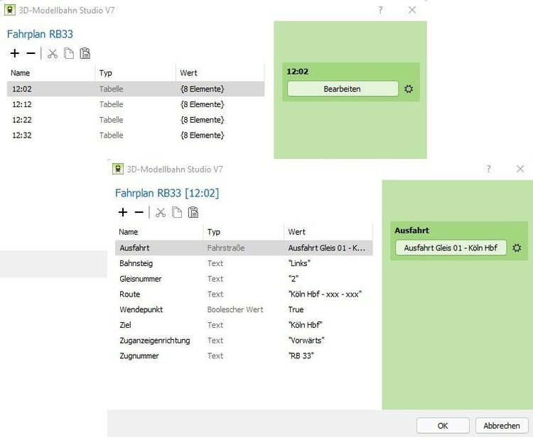 Hallo, ich würde gerne einen Fahrplan mittels einer Tabelle erstellen. Also mehrere Abfahrtzeiten als Index. Pro Zeile sollen dann noch andere Variablen wie Ziel etc. befüllt werden. Dazu habe ich mir für jeden Zug eine List angelegt und jedem Listeneintrag eine Tablle mit verschiedenen Werten angeführt der Zeit zugewiesen. Leider finde ich bisher keine Möglichkeit mit der EV zu prüfen ob einer dieser Zeitpunkte erreicht ist. Gibt es da eine Möglichkeit oder wie habt ihr sowas gelöst?