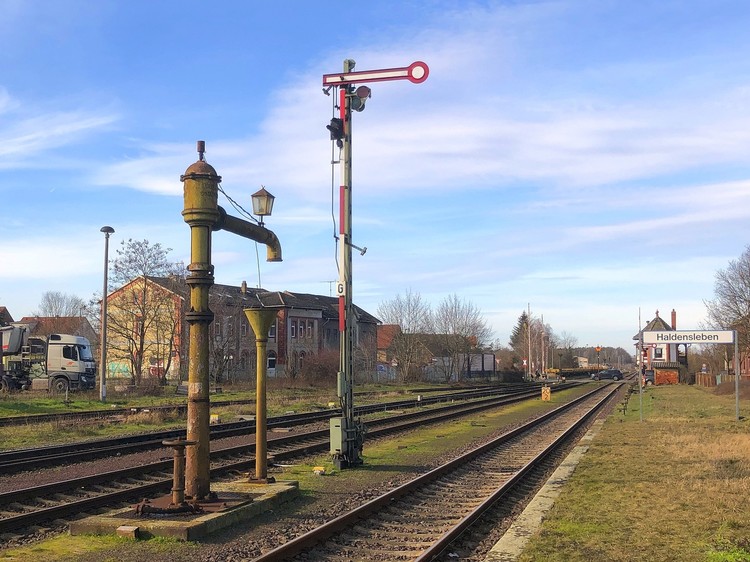 Ich habe kürzlich am Bahnhof in Haldensleben (in der Nähe von Magdeburg) einen schönen alten Wasserkran entdeckt. In "freier Wildbahn" scheinen mir die sehr selten geworden zu sein. Wie auch die Formsignale. Da kann man richtig nostalgisch werden Viele Grüße vom Elefanten