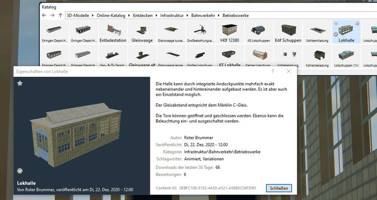 Hallo Markus. Kennst du die Lokhalle von @Roter Brummer? Auf den erstem Blick ist das Modell unscheinbar. Wenn du dir aber die Variationen anschaust, wirst du feststellen das die Möglichkeiten grenzenlos sind. Jede Länge oder Breite ist vorstellbar. Ohne störende Zwischenwände. Für mich eine Perle der Modellbaukunst. Es hat ganz bestimmt viel Zeit und Hirn gebraucht, das Modell so flexibel zu gestalten. Ein großer Dank an RoterBrummer. Schaust du hier: Mit der Lokhalle und der Variante "Grubengleis" von @BahnLand (Geht übrigens mit allen Gleisen aus dieser Kollektion. Auch hierfür ein dicken Daumen ) sowie einigen Grundkörpern aus dem Katalog habe ich mal etwas zusammen gebastelt: Wie du siehst, geht es auch ohne zusätzliche Modelle. Zugegeben, das Ganze ist sehr klobig und warum die Textur nur an den Seiten und nicht auch oben und unten passend aufgetragen wird entzieht sich meiner Kenntniss. Aber es ist ja nur auf die schnelle gebaut. Wenn man da ins Detail geht kann es sicher noch besser aussehen. Dennoch denke ich, das alles im Katalog vorhanden ist um dein Projekt "ICE-Betriebswerk" umzusetzen. Du mußt nur ein bischen basteln, aber macht man das als Anlagenbauer nicht sowieso? Das Angebot von @Dad3353 dir sein Modell zu Verfügung zu stellen finde ich toll. Wie du darauf reagierst finde ich eher mau. Für meine Ohren hört es sich etwa so an: "Ja, ok, schieb mal rüber. Wenn ich es nicht gebrauchen kann, geht´s in die Tonne." Entschuldige, das war ein unhöflicher Gedanke von dem ich mich aufrichtig distanzieren möchte. Jeder Jeck ist anders und wie müssen uns nicht vor Freude in den Armen liegen. Wenn es hier ab und an mal sprachlich etwas robuster zugeht werfe ich einfach mit Wattebäuschchen. Ich möchte mich auch den Gedanken von @maxwei, @streit_ross, @Klartexterund @BahnLand anschließen. Selbst ist der Mann, Frau natürlich auch. Der Schritt vom Anlagenbauer zum Modellbauer ist nur ein kurzer, auch wenn er steinig ist. Was nicht da ist, must du selber bauen. Mit der Akribie, Ausdauer und Fantasie wie du Menschen in Züge setzt, um unser Modellbahnerlebnis zu erweitern, kannst du auch Modelle bauen. Da bin ich mir sicher. Und ich garantiere dir, wenn du dein erstes eigenes Modell auf deine Anlage gezogen hast, dann wirst du stolz sein und dir auf die Schulter klopfen. Dann haben wir dich und du bist Modellbauer und es gibt keinen Weg zurück. In diesem Sinne. Schönen Abend noch. Dirk