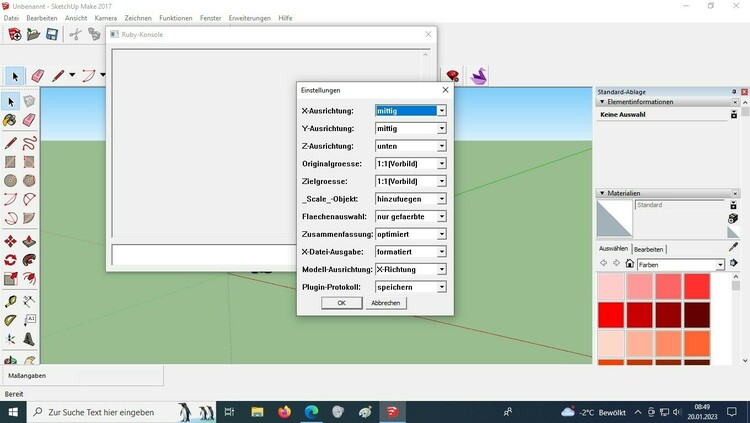 servus Porfessor@BahnLand, servus Western - Karl@brk.schatz, servus an alle Sketchupler Ich habe meine 1ersten ... 4 Lehrlings Veruche mal probiert ... ist nix besonders, aber aller Anfang ist bekanntlich schwer. Foto 1 Foto 2 Foto 3 Foto 4 Jetzt meine nächste Fragen an die Sketchup Profis 1. Ich würde jetzt gerne mal meine 1. Modelle nur für mich mal als Test in den MBS Katalog einfügen. 2. Allerdings liegen meine Daten jetzt nur frei ohne jeglichen weiteren unter Ordner unter Dokumente. 3. Wie und wo muss ich jetzt die Daten speichern mit oder unter x Datei ? 4. Und in welchen Ordner bitte. 5. Wie funktioniert das bitte mit dem Exporter mit meinen Einstellungen siehe Foto Ich glaube, das reicht für das erste Mal mit Fragen ... Ich freue mich auf eure Unterstützung. ... Ok an Hand der ersten Bilder und Versuche könnt ihr evtl erraten in welcher Stilrichtung ich weiterbauen werde. Bitte die Erklärungen kurz und bündig, und evtl mit Fotos für die Einstellungen wie es @BahnLand im 1.Teil gemacht. ( also auf gut Deutsch ... oder wie man so schön sagt ... Idioten sicher ) Ich sage jetzt schon 1x ein herzliches Dankeschön, für eure Hilfe und Unterstützung Gruß schlagerfuzzi ( Wolfgang )