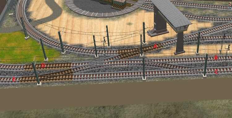 2. Hallo Neo, danke für die Erklärung, damit leuchtet mir dann auch ein, was auf meiner Anlage passiert. Das Beispiel mit den zwei Weichen ist natürlich Blödsinn. Es ging mir nur darum in einem ganz einfachen Beispiel zu verdeutlichen, was passiert. Das reale Szenario ist etwas komplexer (siehe Bild). Beteiligt sind drei Signale und mehrere Weichen. Aus den Richtungen A, B und C können Züge kommen und sie sollen auf die Gleise D und E verteilt werden. Je nachdem, welches der Ziel-Gleise gerade Platz hat, soll der Zug auf das entsprechende Gleis geleitet werden oder auch warten, wenn kein Gleis frei ist. Das klappt eigentlich auch ganz gut, nur manchmal kommt es vor, wenn mehrere Züge gleichzeitig eintreffen, dass zwei Züge gleichzeitig für das gleiche Gleis freigeschaltet werden und dann kracht es eben. Andreas