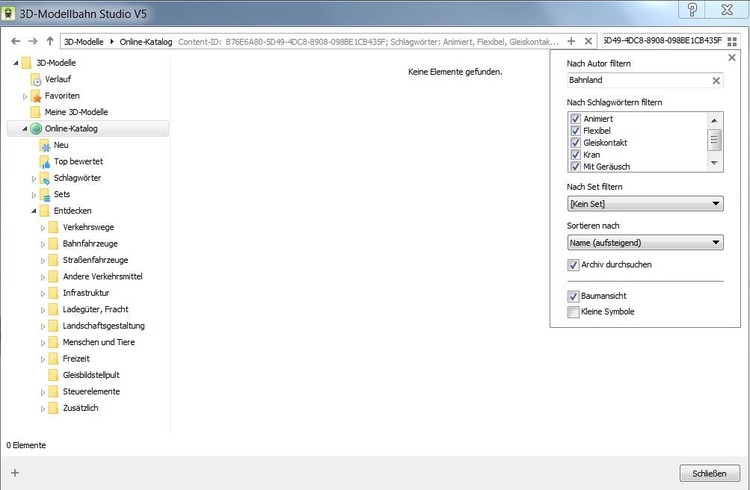 23. Guten Tag, Bahnland Besten Dank für die Erläuterungen und Hinweise. Ich habe das System jetzt begriffen und konnte mein Problem erfolgreich lösen. Ich wollte mir Deine Anlage "Gotthard-Nordrampe" anschliessend ansehen, doch habe ich damit ein neues Problem: Ich kann die Anlage im Katalog nicht finden, obwohl ich nach der Content-ID und nach allen möglichen Filterungen suchte. Was mache ich bei der Suche falsch? Mein Such-Layout füge ich hier im Anhang bei. Beste Grüsse Frenkyboy