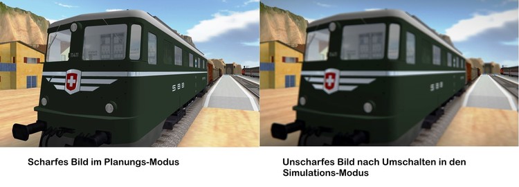19. Hallo, lieber Entwickler des 3D-Modellbahn-Studios Beim Bau meiner neuen Anlage in der Version 5 fällt mir unangenehm auf, dass beim Fahrbetrieb im Simulations-Modus die Ansichten unscharf erscheinen (vgl. Screenshot in der Anlage). Arbeite ich im Planungs-Modus, so präsentieren sich die Ansichten beim Fahrbetrieb alle sauber und scharf. So schön war ich es mir auch bei der Version 4 im Simulations-Modus gewöhnt. Wo liegt das Problem? Wird ein Update von Version 5 Abhilfe schaffen? Sonst bleibt mir wohl nur die Möglichkeit, meine Anlagen im Planungsmodus laufen zu lassen, die Gizmos zu entfernen und störende Schienenkontakte usw. auf "unsichtbar" zu schalten. Die weissen Kästchen um eine gerade angesteuerte Lokomotive bringe ich damit allerdings nicht weg. Freundliche Grüsse - Frenkyboy
