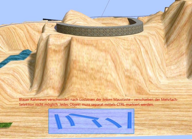 9. Hallo, liebe Entwickler Ich habe ein neues Problem: Nach der Gleisverlegung in der "Test-Anlage" wollte ich mit der Steuerung beginnen. Die beiden Kontakte (Position: siehe rote Punkte) sollten beim Befahren eine Geschwindigkeits-Reduktion auslösen. Der Zug fährt jedoch mit voller Geschwindigkeit durch! Ich habe in der Anlage "Experiment" die gleiche Situation nachgestellt. Hier funktioniert die Steuerung einwandfrei (wie übrigens auch bei früheren Anlagen). Was läuft in der "Test-Anlage" falsch? Dazu kommt ein weiteres Problem: Die Auswahl von Mehrfach-Objekten mittels des blauen Rahmens funktioniert ebenfalls nicht (vgl. Screenshot "Blau-Feld"). Aber im "Experiment" auch hier einwandfreie Funktion. Wo steckt der "Bug"? Besten Dank für einen Lösungsvorschlag. Frenkyboy Experiment.mbp Test-Anlage.mbp