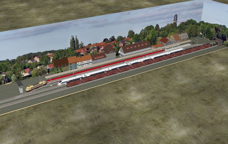 Hallo Forum, ich möchte Euch meine erste Anlage vorstellen: ein vielleicht ein wenig groß geratenes Diorama mit einem Bahnhof mit 4 Gleisen. Ich hab die Anlage als zip hochgeladen, weil auch noch ein paar externe Dateien dabei sind. Die Anlage funktioniert vollautomatisch mit bis zu 15 Zügen (da wird sie aber langsam, weil sehr voll, vielleicht gehen auch 16, hab es noch nicht probiert). Links ist ein 3-Züge Schattenbahnhof, bei dem die Züge nicht in Reihenfolge rausgefahren werden, sondern per Zufall. Und rechts ist eine Gleiswendel mit 11-Blöcken. Oben am Abschluss der Gleiswendel ist eine Wende. Im Bahnhof sind die mittleren Gleise für den Durchzug, die äußeren sind für Personenzüge zum Halten. Beim Geräusch verbirgt sich noch ein kleiner Gag. Wer sich für die Anlage interessiert: viel Spass !!! mfG Kurt Diorama_14_zuege.zip