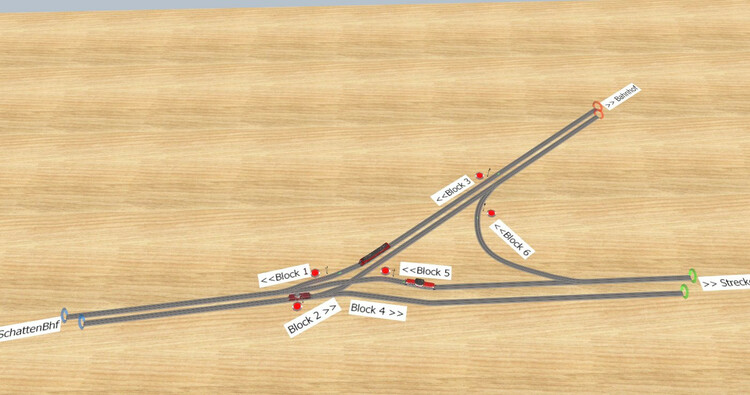 Hallo, Ich möchte mein Gleisdreieck (kleiner Ausschnitt meiner ganzen Anlage) mit den neuen Fahrstrassen steuern. Block 1-3 (= nur Muster Blocksteuerung) ist kein Problem - aber für die Abzweigung Block 2 oder Block 4 (Steuerung über Lok-Variable) bzw. Einspeisung von Block 5 Richtung SchattenBhf und Block 6 Richtung KopfBhf finde ich keine Lösung. Ist sowas mit den Fahrstrassen überhaupt möglich ??? Es wäre super wenn mir jemand diesbezüglich eine Info/Lösung mitteilen könnte. Lg Roland Fahrstrasse Gleisdreieck.mbp