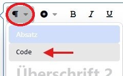 Hallo @wkh , für Code Blöcke hat der Editor seit Umstellung der Forensoftware einen neuen Menüpunkt: Du findest ihn jetzt auf dem ersten Knopf im Header: Viele Grüße Götz
