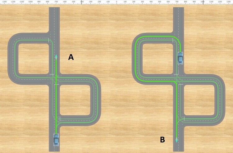 Hallo Herman, das will ich gerne versuchen. Im folgenden Beispiel gibt es vier Wege, die vom Startpunkt zum Ziel A führen. Von dort gibt es wiederum vier Wege, die zum Punkt B führen. In Summe würde das bedeuten, dass 4*4 = 16 Wege vom Start über A nach B denkbar wären. Wie du im nächsten Bild siehst, bekommst du aber nur 5 Wege zur Auswahl. Die übrigen 11 hat das Studio schon aussortiert. Das Studio schließt jeden Weg aus, bei dem ein Abschnitt mehrfach befahren würde. Wenn es das nicht täte, dann wäre die Anzahl an Möglichkeiten unbegrenzt, denn ein Auto könnte dann auch mehrfach im Kreis fahren, bevor es die Reise zum Ziel fortsetzt. Du siehst an diesem Beispiel beides: Die Anzahl möglicher Wege potenziert sich Das Studio hat viel Arbeit damit, bei dieser Vielfalt alle untauglichen Lösungen zu eliminieren. Lass mich bitte wissen, wenn du die Erklärung auf Englisch benötigst. Ich habe sie auf Deutsch verfasst, weil so mehr Leser davon profitieren. Viele Grüße Götz