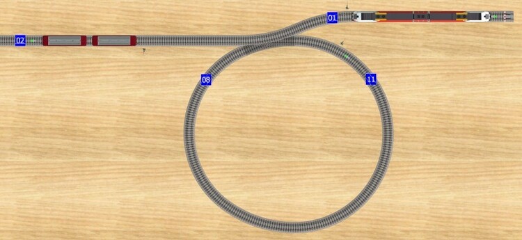 Tut mir leid, Jürgen, aber ich sehe noch nicht ganz, wo du hin willst. Wenn du die beiden Portale gedanklich mal zusammenlegst, dann hast du im Prinzip ein Oval mit zwei Abstellgleisen. (Ob eins davon ein entfernter Bergbahnhof ist, spielt für das Prinzip überhaupt keine Rolle) Welcher der beiden Züge soll auf dieser Anlage wann welche Strecke fahren? Kreist einer ständig auf dem Oval, während der andere zwischen den beiden Endstationen pendelt? Oder sollen beide Züge irgendwie beide Endbahnhöfe bedienen und dazwischen das Oval nutzen? Viele Grüße Götz