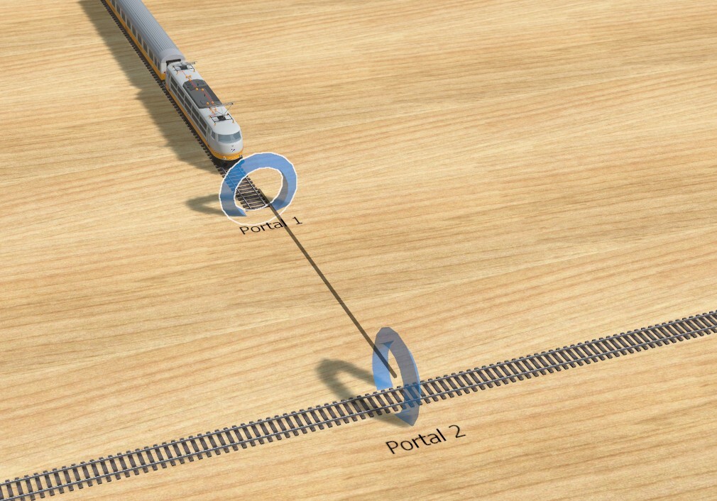 @Leslie Portal 1 ist mit Portal 2 verbunden. In welcher Richtung soll der Zug das Portal 2 verlassen, wenn er von Portal 1 kommt? Das ist eine rhetorische Frage, die dir zeigen soll, warum Portale in der Mitte keine gute Idee sind. Viele Grüße Götz