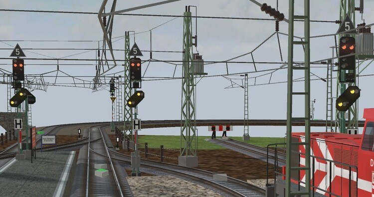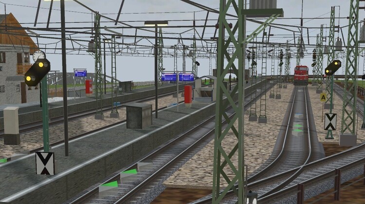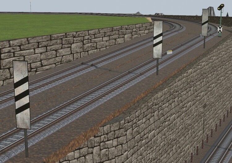Hallo @Markus44, folgende Dinge sind mir noch aufgefallen: Diese Vorsignalbaken von Franz sind viel zu groß. Die musst du bitte auf 0,5 runter skalieren. (Zum Vergleich: Die Vorsignalbake von Tim Fischertechnik hat eine korrekte Größe.) Vorsignale am Anfang des Bahnsteigs erfüllen keinen Zweck. Der Lokführer kann an diesem Punkt problemlos das Hauptsignal am Ende des Bahnsteigs erkennen. Diese Vorsignale kannst du ersatzlos rauswerfen. (Für die Gegenrichtung am gegenüberliegenden Ende natürlich ebenso.) Das Hauptsignal gleich hinter der Ausfahrt ist ohne Nutzen. Das nächste Signal nach der Ausfahrt sollte ein Blocksignal sein und in großem Abstand (auf halber Strecke zwischen der Ausfahrt und dem Blocksignal E05) stehen. Oder du lässt es ganz weg. Viele Grüße Götz