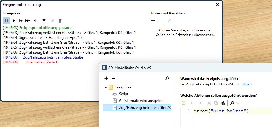 Hallo Roni, Neo empfiehlt dafür meines Wissens den Lua Befehl error(): Das Protokollfenster muss geöffnet sein, damit der Befehl alles anhält. Bei geschlossenem Protokollfenster wird er ignoriert. Viele Grüße Götz