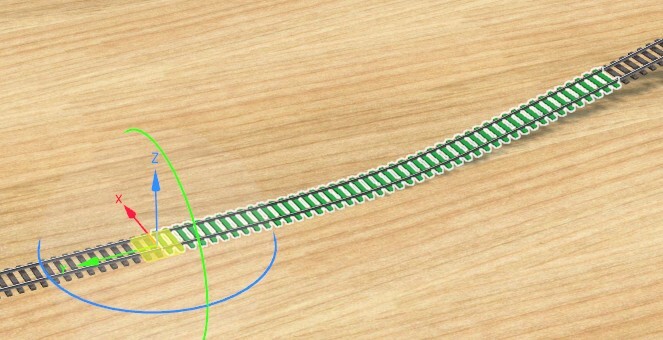 How to round off the transition in and out of the slope: Ideally, the two pieces of track that meet at the transition point should be of similar length. Select any piece, open the Positioning menu and turn off Automatic height adjustment. Remove either one of the two elements. Then select the blue triangle at the end of the second piece. In the middle of the gismo you'll find a grey square. Grab the square and drag it to the other open end until it snaps in place A curve is formed automatically Kind regards Goetz