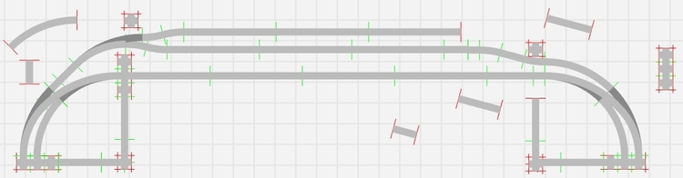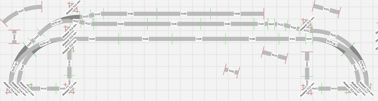 16. meine tests hab ich im fleischmann-system gemacht; die klemmenden bogenweichenkonstruktionen mit den originalen dort hab ich leider schon gelöscht. hier aber mein layout in fleischmann samt meiner 4 bogenweichen. es ist völlig klar, dass nicht jeder die kataloge ändern darf und soll, zumal sie ja online und für alle sind. bei dem export/import dachte ich nur an meinen lokalen bereich. ps: vielen dank für die mühe, das in roco aufzumalen .. werd ich studieren - und auch mal umdrehen. (welchen gleisabstand hast du da? bei roco ist keine hilfskreuzung dabei) .. ich habs nachgebaut und - geschnallt. bei roco braucht man die zwischenstücke, bei fleischmann nicht .. alles soweit klar jetzt. vielen dank nochmals! .. werde wohl bei roco bleiben, denn - im fall der fälle - würd ich eine reale anlage eher ohne gleisbett an den schienen bauen. dort leider keine unterflurantriebe, aber na ja - ich lerne weiter.