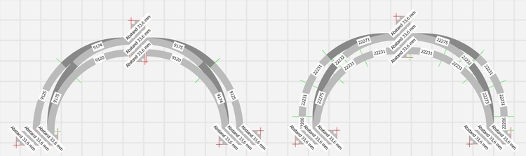 17. vielen dank henry! ich verstehe es nur nicht ganz. ich habe 2 "symmetrische" weichen konstruiert, die z.b. rechts passen. dann hab ich sie links (quasi spiegelbildlich) eingesetzt und es geht absolut NIX mehr. dann hab ich je ein unterschiedliches paar gebaut und es geht - das will aber nicht in meinen kopf . als modelleisenbahndummie frag ich mich nun, ob das ein knopf in meinem hirn ist oder ob das so sein muss. .. einen fehler deinerseits kann ich nicht bestatigen, denn ich hab die "passenden" (dunkelbraunen) weichen ja eh im piccolo-system gefunden und sie haben ins rocosystem gepasst - beidseitig; das hat mich ja u.a. so "verrückt" gemacht, denn ich kann die einstellungen der katalogweichen ja nicht auslesen und so verwenden. psne: das sind jetzt also insgesamt 4 bogenweichen. 1 paar (9174/9175 bei fleischmann) für den einsatz rechts und eines für "links", welche einwandfrei in die geometrie passen und auch "kuppeln". sorry, ich hab die software erst seit gestern. schon wärs auch, wenn ich die jetzt ins roco-system im katalog rüberkopieren und anpassen könnt, statt sie dort ganz neu zu machen . ach ja, wenn wir schon dabei sind .. man kann weichen zwar exportieren, aber wie importiert man sie?