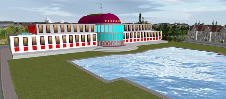 Hallo an alle, hier mein Hotel aus Grundkörper und eingepasste Objekte aus dem Katalog, habe nach Axel`s vorschlag das Hotel in eine neue Grundplatte eingefügt und als mbp gespeichert. Park Hotel.mbp