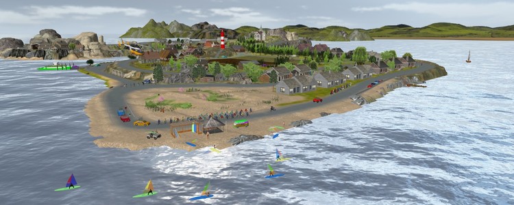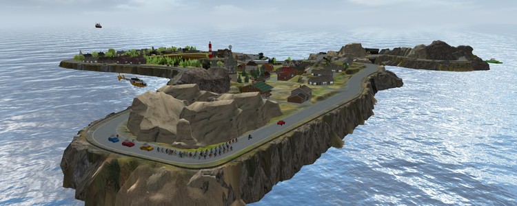 Hallo an alle, möchte euch hier meine Anlage vorstellen, ich hatte die unendliche Welt von Minecraft im Auge und wollte es in MBS auch, die Idee : runter von der einer festen Grundplatte, um an den Horizont zu stoßen. Herausgekommen ist eine Insel mit Fährbetrieb zum Festland, Surfern und Radfahren, dabei wollte ich unter 2 Millionen Polygone und über 25 FPS bleiben, daher habe ich Markierungsstriche zu Fahrspuren gemacht und keine Gleise verbaut. Die Surfer und Surfbretter werden noch überarbeitet, ich glaub da ist JimKopf dran Die Anlage findet ihr auch unter " Inselradrennen und Surfen " im Katalog unter Fertige Anlagen oder hier als mbp Datei Gruß Opax Inselradrennen und Surfen.mbp