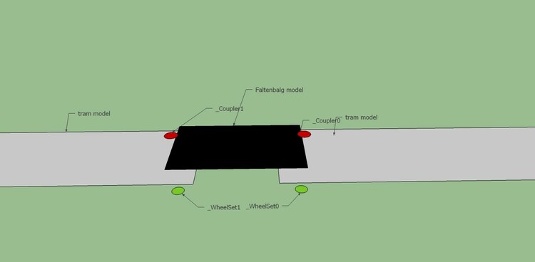 Ich brauche auch paint.net Ja, das wird ein bisschen rätselhaft, um das gut und glaubwürdig zu machen, ohne dass der faltenbalg im Modell herausragt. Sie müssen den Faltenbalg jedoch etwas verlängern, damit er im Modell selbst verschwindet, ohne wieder aufzutauchen, wenn das Modell der Biegung folgt. Das bedeutet, dass sich die Kupplung mehr nach innen bewegen muss. Es besteht keine Verpflichtung, die Kupplung exakt am Rand des Modells zu platzieren. Im Folgenden habe ich versucht, es in einer SKP-Zeichnung zu erklären. Sie können den Faltenbalg als eigenständiges Modell bauen, was hilft, das Modell "natürlich" zu drehen. Und dort, wo die Kupplung im faltenbalg Modell platziert ist, baut man dann auch noch ein unsichtbares Drehgestell. Viele Grüße ein guten beispiel, der doppelstockwagen von @Reinhard 8098044C-9F56-4BF4-AD36-1FC5D47C0F00 (das model) EE8E8DE9-3694-4B6D-99B0-B0AE190417FD (faltenbalg) Viele grusse EDITED Oder geben Sie jedem Modell ein Stück Balg, bei dem ein Balg etwa einen Millimeter schmaler und niedriger ist als der andere (damit sich die Texturen in MBS nicht überlappen und daher beim Rotieren nicht auffallen) und platzieren Sie die _kuppler auch dort ein bisschen nach drinnen. ISeh mal die Schwebebahn von @maxwei (es gibt auch andere) 3AD71840-BC5C-411F-A085-076C8E435691 5C13318A-9A17-45E9-A6DD-85B5C51EDE53 4A3C7E38-757F-4F5D-A5AF-7054FD32B9EF- KTM-5 (russ. Tram)