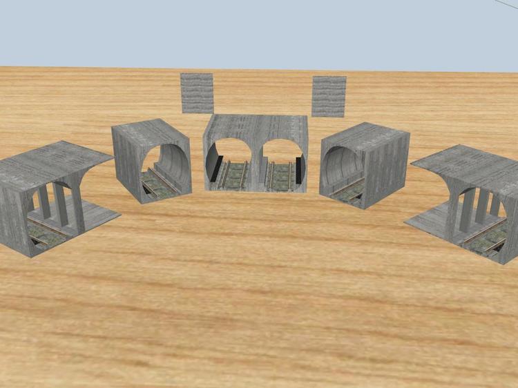 Ich bin auf diesem Projekt von Kanalbrücken, den Seitenwänden, Kanalbrücken-Kreuzungen mit Einweg-Nebenstraßen, den Einbahnstraßen, die sich damit verbinden, und einigen anderen Dingen, die ich denke, dass es vervollständigen könnte. Schwer ist es, alles so kompatibel und so vielfältig wie möglich zu machen. Es geht langsam, schließlich muss alles getestet werden .... Das erste, was wirklich fertig ist, sind diese Tunnelstücke, und sie sind multifunktional. Da ich möchte, dass die Kanalbrücken und Wände auch für Züge genutzt werden können, müssen die Tunnel auch kompatibel sein. (Vielleicht sollte ich den Abstand zwischen den Säulen größer machen) Hier ist das erste Ergebnis. Neben dem Standardmodell gibt es 8 Variationen. Mit der Zeit hoffe ich, neben der Ziegelstein- und Betontextur auch andere Texturen einzubauen. (oder wäre das zu viel?) __________________________________________________________________________________________________________ I am on this project of canal bridges, the sidewalls, canalbridge-crossroads with one-way side roads, the one way side roads combining with it, and some more stuff that i think that might make it complete. Hard thing is, to make it all compatable, and as multifuncional as possible. It goes slow, afterall, everything needs to be tested.... First thing realy ready are these tunnel pieces, and they are multifuncional. Since i want that the canalbridges and walls can be used for trains aswell, the tunnels must be also compatable. (Perhaps i should make the distance between the pillars widher Here is the first result. Besides de default model, there are 8 variations. With time i hope to include other textures for it, besides the brick and concrete texture. (or would that be to much ?) Viele Grüße
