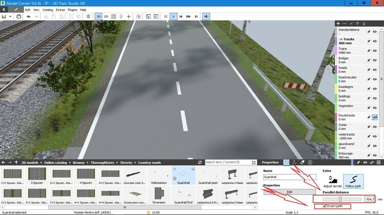 Lovely ! Il ike the way how you have put the road higher and that stairs that leads up to it... so real ! You know you can adjust the distance from the crashbarriers to road itself, correct ? I mean, i you place the barrier next to the road and use the follow me tool... there is this adjustment you can make. If you place one, set it to the right distance, and then use the follow me tool again for the rest of the pieces of the road, the rest of the barriers will have the same distance as the first one you have placed (and configurated) (just recicicling info... you might allready know this) Perhaps i should allready upload some textures i edited on the basis of @BahnLandhis road textures, as an extra option in the MBS catalog. Dunno though how quick it might be available. I think @Neo is quite busy now with the V7 version. But then again, you can edit it yourself also, by exporting the texture, edit and re upload as a personel one. About the the white crash barriers. yes, they are from de faller roads. So those are white. By the way, your layout is European setup ? That road looks like a Dutch river side... very similar ! Gratz ! (could be German ) Or this one. Fresh... have a try. 375CA842-DD9A-4E38-9C9B-E5E63C9EC4AA And , have you tried these ? FB15B21B-B29A-4065-AA7C-0AC766030C9E These are from @FeuerFighter