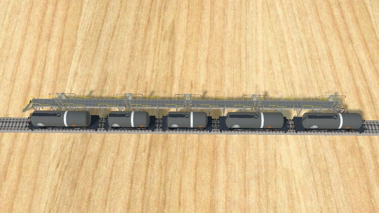 Simon Each oiloader conecter piece is to be used with its indicated cars. This is to have the animation work exactly on the inlets of the wagons. In the diferent model options you can see which car should be used with the model conector. On the picture below an example. Please follow up if there are any issues. With kind regards, Download this layout to have a look on a combination i have set up to see which piece is used where... Unfortenatly the inlet of the tankcar isnt exactly centralized. Thats why they all need to face the same direction, as you can see by the white stripes on the these cars. The newer tankcars, the shell etc, are centralized. So those you can place in whatever position. But from those the texture is also identical on both sides. 8C8B8A5E-02CA-4FA6-8C7A-A5DDC54FD0F0
