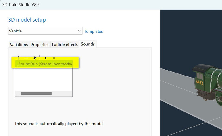 Hallo Dad, das Mit dem Geräusch soltest Du so ändern Dampflok 2 ist nur ein Beispiel aus dem Online Catalog Gruß Hermann