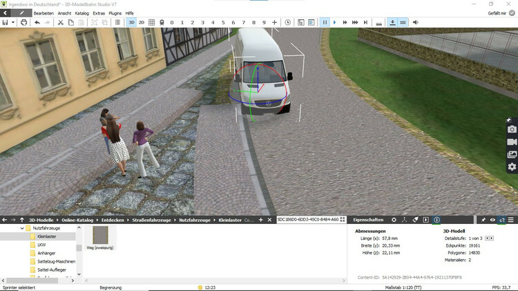 Hallo Reinhold, die Nacht hat Dir gut getan. Es paßt alles! Mir ist nur eine Sache aufgefallen, die wird problematisch für unsere Modellbauer! Schaut mal das Bild an. Ich habe die eine Begrenzung schon entfernt. Im Kurventeil des Splines wird die Spur des Transporters sehr weit nach außen getragen. Die Begrenzung dockt direkt an, und das eine Rad des Transporters fährt dann auf der Kante lang. Das kriegen wir wohl nicht verbessert. Gewundert habe ich mich diesmal, dass die beschleunigte Animation kaum Wirkung zeigt, auch x4 nicht... Trotzdem . Kannst mir mal mailen, wie's dann doch geklappt hat. Grüße Andy p.s.: die Kulisse im Süden mag ich nicht, weil da der Himmel nicht ausgeblendet ist.