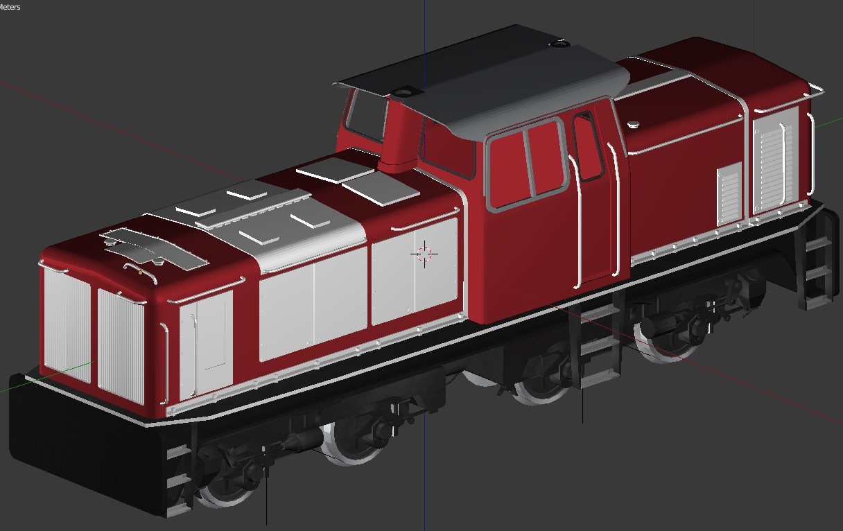 Hi Brummi, the comments I will give now are entire subjective and originate from my way of adding many details using both mesh and textures, where you keep polycount much smaller by providing details in texture alone. I refer my comments to this model picture (see picture 1) 1) This area should have 4 3d protrusions. 2) These texture bolts are far too big and dominating. Should be much smaller and bled in discreet with the plate color. 3) Same as 2. 4) The vents should also protude from the main body in 3D and be a mainly horisontal line texture. You have used a mesh style texture. 5) The line of lighter "bolts" is far too light and therefore dominating the visuals on the bogey. Again, they should be very subtle. 6) The main drive wheel is flat and does protude in 3D mesh further out. 7) The main vertical silver divider in the windows missing. Technically I find a perfect running locomotive! And please see my above points as points of view, not "the one and only way" to balance mesh and texture. But you have produced a wonderful model with less polygons than the open oberservation wagen I am building right now I think you could be more generous with the polycount to make the sides become a bit more 3D, like the original. Without going overboard like I tend to do with the mesh Respectfully, Henrik