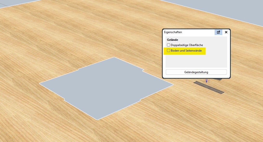 Hallo Lutz, Rechtsclick auf die Bodenplatte und dann unter Eigenschaften den Haken bei Boden und Seitenwände entfernen, dann klappt es mit dem Ausschnitt. LG Ronald
