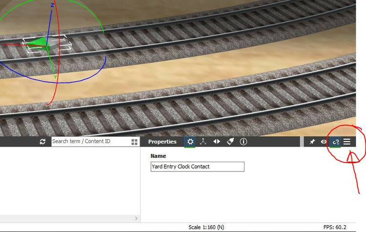 I can try and use Google Translate for you. I'm guessing you would prefer Spanish? Pease be aware that it is not the most accurate of translators and does have a "Pythonesque" tendency to mistranslate... In the online catalogue, under "Infrastructure > Rail Traffic" you will find a bi-coloured diamond shape (only one at V5 yellow and green in colour). These are track contacts. Place one at every point you want a train to do something. As a short cut, if you want the same thing to happen in a lot of different places, then complete everything for one contact and copy and paste it. You don't even have to rename the pasted version(s), but it is a good idea to do so. With the contact selected you can change the colour to signify a different purpose and also set the direction it is activated from, but most important is the drop-down menu, three bars in the far right. I'm going to work on a simple example to detect a train and stop it, and assume this will be used in other places. Click the menu button as show, then select Keywords/Variables. In the window that opens click the + to add a new variable and select "Keyword", then put a name of (for example) Detect Train. Then close that and agree to apply your changes. Next from the drop down menu select Events. Select new, and "Track contact is triggered". This will open the event dialogue. Change the name of the event to something meaningful like "Stop detected train", then where it says "When will the event be triggered", click on the name of the contact, and then "select (Keyword)" from the pop-up menu. In the drop-down selection box that opens, select "Detect Train" or whatever you called it. This will ensure that whenever a train hits a track contact with that keyword, the event is actioned. So now we decide what we want the event to do. Stop the train. Click the + to add an action, then select Actions, Vehicles, Set Vehicle Speed In the green bar that opens on the right, select the cogwheel by where it says "All vehicles" under the word "Vehicle" and from the dropdown select "Trigger". Then (and this is important, I keep forgetting to do it even at V7) open the drop down where the words "Track Contact" have appeared and change it to say "Vehicle". Leave everything else as it is, exit the wizard and say yes you want to apply your changes. Now, every time a train reaches that track contact it will stop. I suggest playing with all the other options. You can use events to set points (turnouts/switches - we call them points in the UK), change signals, set timers... Down-load some of the sample layout from the catalogue and have a play with them. If you break it, just delete it and down-load it again! V6 has a lot more features than v5, probably the best one being the introduction of deceleration and acceleration contacts, and especially the deceleration ones, where the train will stop at the contact rather than decelerate once it reaches it. If you have any questions, please feel free to ask. Simon ................................... Puedo probar y usar el Traductor de Google por ti. ¿Supongo que preferirías el español? Tenga en cuenta que no es el traductor más preciso y tiene una tendencia "pitonésica" a traducir mal ... En el catálogo en línea, en "Infraestructura> Tráfico ferroviario" encontrará una forma de diamante bicolor (solo uno en V5 de color amarillo y verde). Estos son contactos de seguimiento. Coloque uno en cada punto en el que desee que el tren haga algo. Como atajo, si desea que suceda lo mismo en muchos lugares diferentes, complete todo para un contacto y cópielo y péguelo. Ni siquiera tiene que cambiar el nombre de las versiones pegadas, pero es una buena idea hacerlo. Con el contacto seleccionado, puede cambiar el color para indicar un propósito diferente y también establecer la dirección desde la que se activa, pero lo más importante es el menú desplegable, tres barras en el extremo derecho. Voy a trabajar en un ejemplo simple para detectar un tren y detenerlo, y asumiré que se usará en otros lugares. Haga clic en el botón de menú como se muestra, luego seleccione Palabras clave / Variables. En la ventana que se abre, haga clic en + para agregar una nueva variable y seleccione "Palabra clave", luego ponga un nombre de (por ejemplo) Detectar tren. Luego ciérrelo y acepte aplicar sus cambios. A continuación, en el menú desplegable, seleccione Eventos. Seleccione nuevo y "Se activa el seguimiento de contacto". Esto abrirá el diálogo del evento. Cambie el nombre del evento a algo significativo como "Detener el tren detectado", luego, donde dice "¿Cuándo se activará el evento?", Haga clic en el nombre del contacto y luego "seleccione (Palabra clave)" en la ventana emergente. menú. En el cuadro de selección desplegable que se abre, seleccione "Detectar tren" o como lo llame. Esto asegurará que cada vez que un tren golpea una vía y contacta con esa palabra clave, el evento se activa. Así que ahora decidimos qué queremos que haga el evento. Detén el tren. Haga clic en + para agregar una acción, luego seleccione Acciones, Vehículos, Establecer velocidad del vehículo En la barra verde que se abre a la derecha, seleccione la rueda dentada donde dice "Todos los vehículos" debajo de la palabra "Vehículo" y en el menú desplegable seleccione "Activar". Luego (y esto es importante, sigo olvidándome de hacerlo incluso en V7) abre el menú desplegable donde han aparecido las palabras "Track Contact" y cámbialo para que diga "Vehicle". Deje todo lo demás como está, salga del asistente y diga que sí, que desea aplicar sus cambios. Ahora, cada vez que un tren llega a ese contacto de vía, se detendrá. Sugiero jugar con todas las demás opciones. Puede usar eventos para establecer puntos (desvíos / interruptores, los llamamos puntos en el Reino Unido), cambiar señales, configurar temporizadores ... Descargue algunos de los diseños de muestra del catálogo y juegue con ellos. Si lo rompe, simplemen