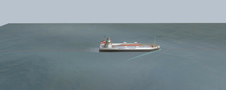 Not sure if this will work, but you could try using particle effects for the wake, and the bow wave use a couple of cones. I'll give it a try and see.