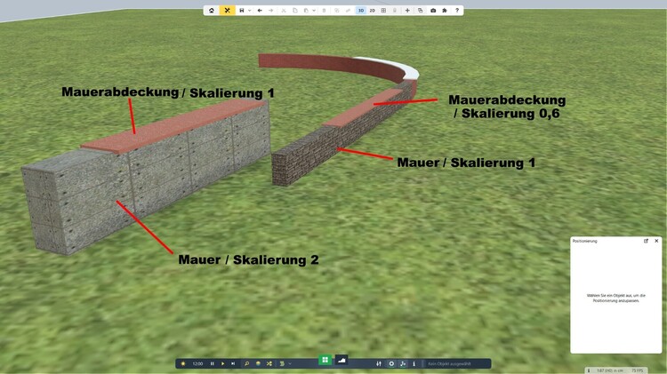 Hallo @Spurwechsel, Danke für deine Meinung. Du kannst die Mauer doch über den Eigenschaften skalieren. Man muss ja immer Abwegen was ist jetzt die richtige Größe für ein Modell. Bei manchen ist es einfacher das es nur eine bestimmte Größe gibt. Gruß Christian