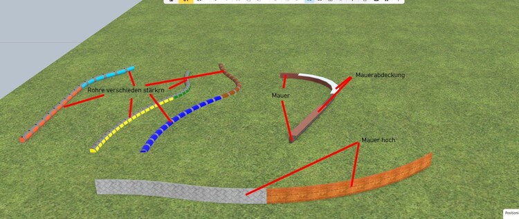 Hallo, Ich hab hier mal ein paar Modelle Hochgeladen zum Testen. Tipps und Anregungen immer gern. Bitte noch nicht ganz so streng mit der Bewertung sind ja meine ersten Modelle die Ich Hochgeladen hab. Jeder hat ja mal angefangen. Hab auch ein Bild mit hinzugefügt. Ein paar ID's- habe Ich auch noch. Das eine oder andere Modell könnte man eventuell weg lassen. Wollte aber eine alternative anbieten. Viel Spaß beim Testen. Tipps und Anregungen immer gern. Bitte nicht zu stark schimpfen. Sind ja meine ersten Modell. Mauer (Spline) 4A16BE3B-AC9D-452E-93AB-009593EFC73B. Mauer Hoch 2CCF123D-BD12-4333-B142-AD819C589D34. Mauerabdeckung B2354581-B19B-4FE5-AA3F-AD2E6EA32857 Rohr 1 941A97DA-C5CC-4B54-B053-A1DC6135E252 Rohr 2 8D6AA05B-0574-422F-B70E-7DCCFEE2AC69 Gruß Christian