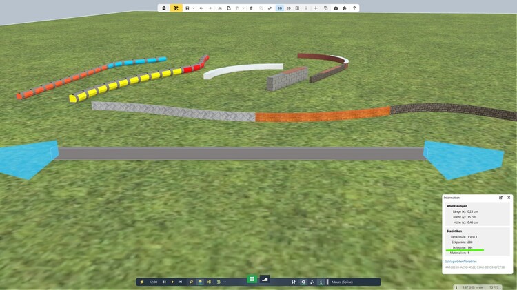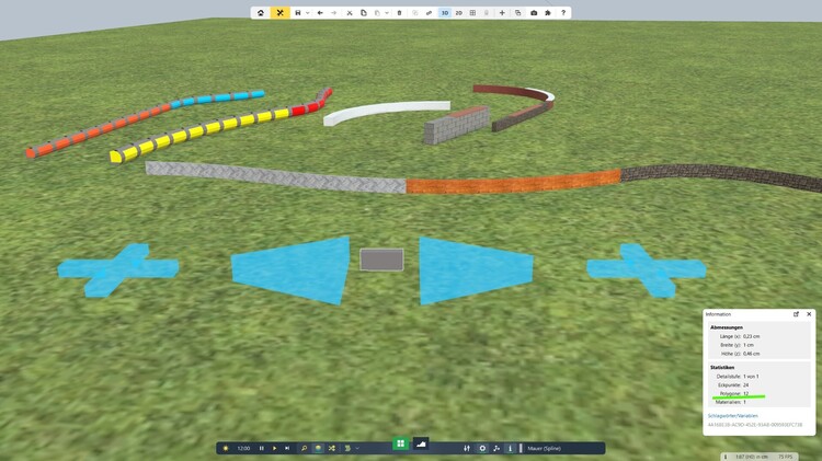 Hallo, Hab das Modell Mauer etwas überarbeitet. Hab nun Variationen hinzugefügt. neue ID Mauer(Spline) 5B80C67B-88C1-469C-87A9-909F281E7237 Gruß Christian