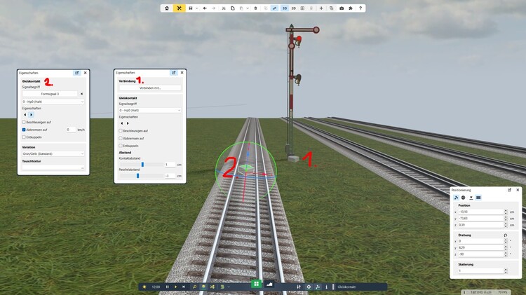 Hallo @alexander42, Ich hab es immer so gemacht wie auf dem Bild zu sehen ist. Nr.1 ist der Kontakt vom Signal. Nr.2 ist ein Kontakt aus dem Katalog. Wie auf dem Bild zusehen hab Ich das Gleis ein wenig gekippt trotzdem steht das Signal gerade. Hoffe das Hilft dir. Gruß Christian