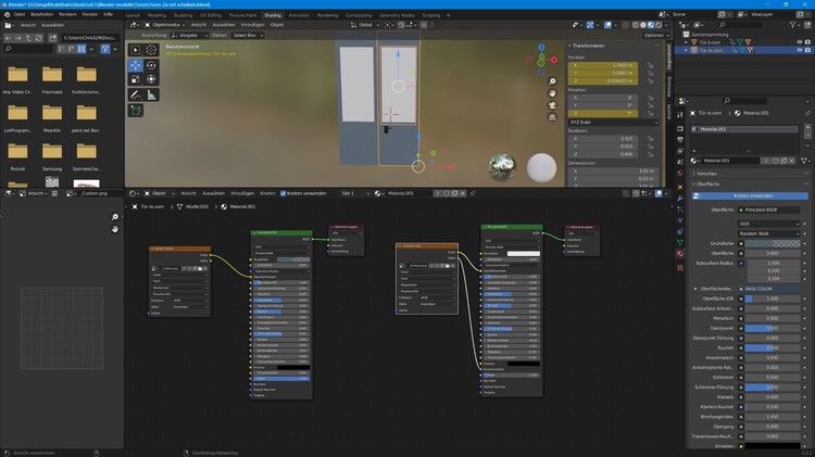 Hallo, Ich hab noch etwas mit Blender experimentiert und ein paar Türen erstellt. Nr.1-einmal sind die Türen ohne Tauschtextur und mit Scheiben. Nr.2 einmal sind die Türen mit Tauschtextur und ohne Scheiben. Ich glaub beides zusammen funktioniert nicht. Könnte mir das jemand bestätigen wenn es so ist. Danke Gruß Christian