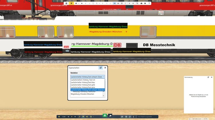 Hallo, Hab die Laufschrift nochmal etwas überarbeitet. Dank der Hilfe von Bahnland. https://drive.google.com/file/d/19Jh_rd_9rfEgMgrnl-KZcTQEaay06AIT/view?usp=sharing Gruß Christian