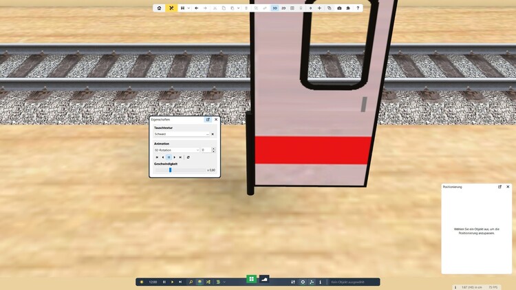 13. Hallo Bahnland, Es war ja nur eine Idee ob dies überhaut geht. Ich weis nur noch nicht wie Ich das mit Bordmitteln hinbekommen soll. Nach links oder rechts ist ja kein Problem. Hierzu hab Ich eine Schiene und einen SX Antrieb verwendet und diese mit dem Modell verknüpft. Hier für müssten sich die Türen ja um eine Achse drehen. Gruß Christian.