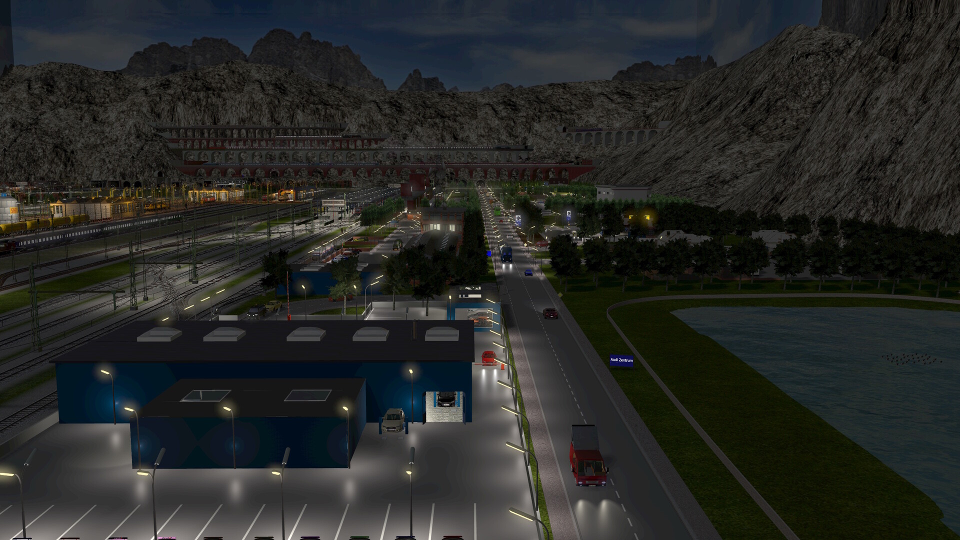 Hallo, kleines Beispiel wie man meine mit Blender erstellte Halle einsetzen kann. Da ja alle Wände und das Dach ausblendbar sind Ist sie mit Grundkörper individuell gestaltbar im diesem Fall die Vorderseite. Im Bild links mit Grundkörpern gestaltet Vorderfront. Auf der rechten Seite das Original. Da die Tore in der Breite verstellbar sind kann man wie in diesem Beispiel 2Tore mit einem Schalter steuern. Ich hoffe man kann es auf dem Bild erkennen. Gruß Christian